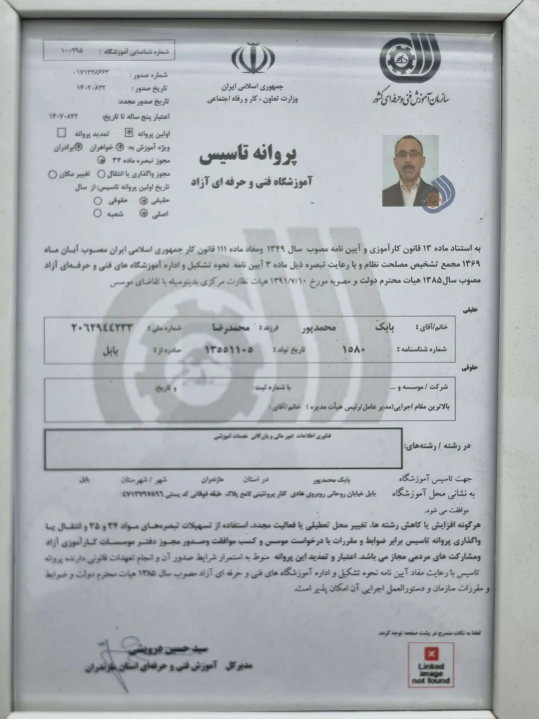 مجوز پروانه تاسیس آموزشگاه فنی حرفه ای آزاد