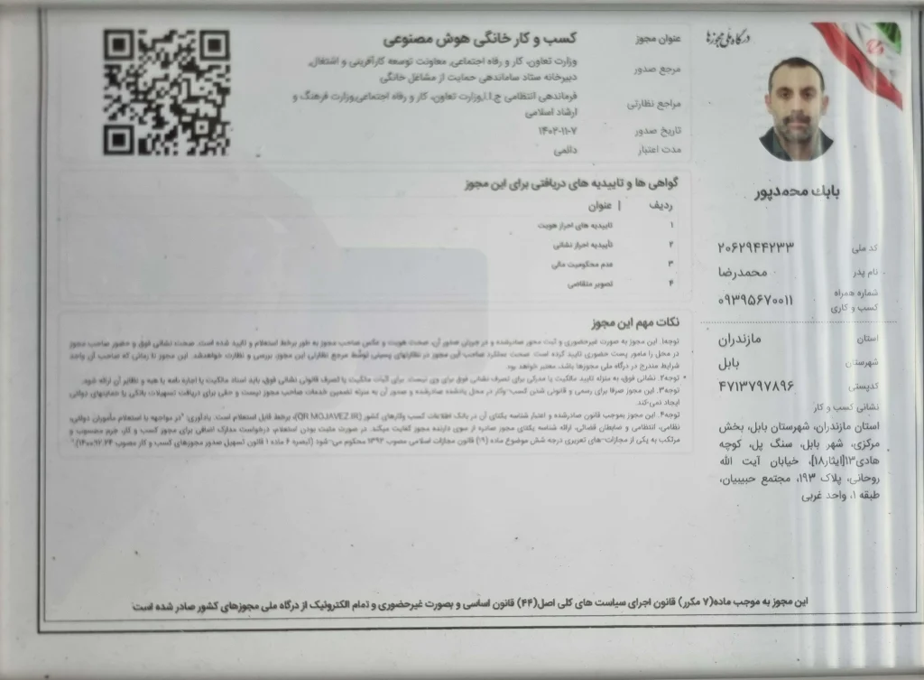 ما برای اطمینان خاطر شما، تمامی مجوزهای لازم را دریافت کرده ایم. در ادامه می توانید اسناد یا مجوزهای رسمی مربوط به فعالیت ما را مشاهده کنید.